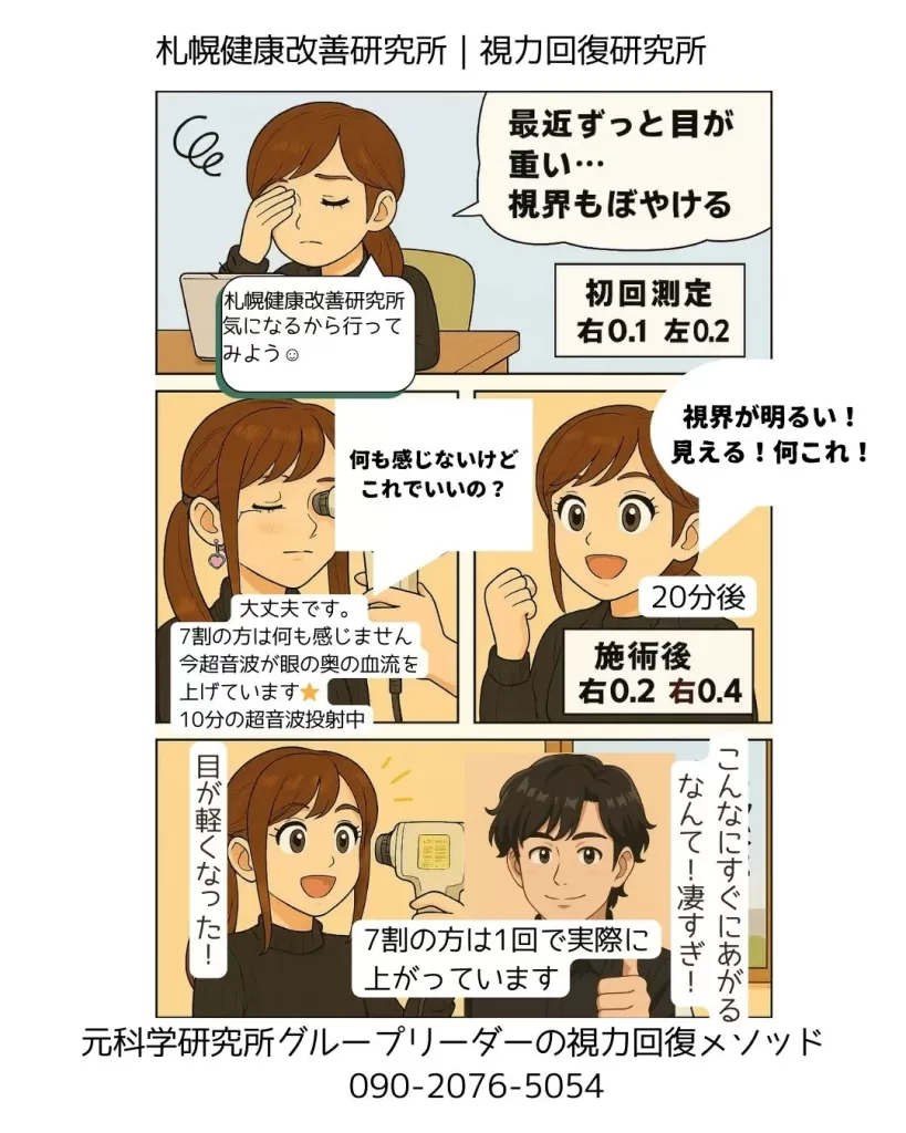 2022年、独立のため退職し札幌へ帰郷。 翌2023年に 札幌健康改善研究所 を立ち上げ、 超音波×眼筋アプローチによる 手術に頼らない視力回復サポート を開始。